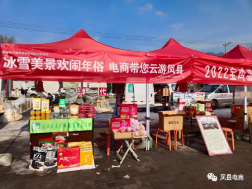 凤县为九山半水半分田,五帝文化、羌族文化、地域文化“三朵云”共生共荣。在凤县电子商务公共服务中心的指导与协办下,凤县黄牛真牛农旅开发有限公司先后开展了黄牛铺镇第一届旅游推介会、2022年东河桥冰雪游、黄牛铺镇冰雪趣味运动会、2023年风县花椒采摘大赛等不同主题、不同文化内核的露营活动,在电商平台广泛宣传推广,吸引外来游客在地旅游,从而扩大凤县景点门票、旅游周边商品、县域特产等的线上消费。