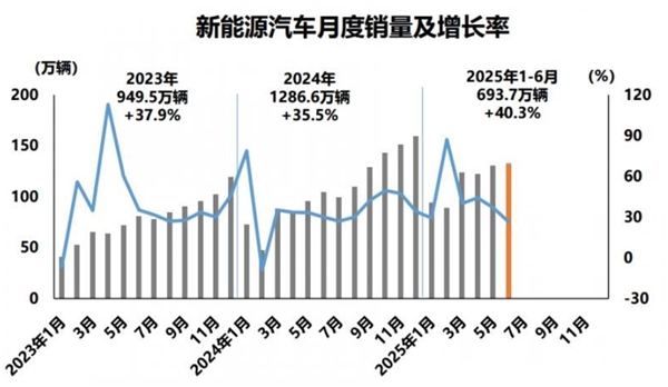 今年以来,新能源汽车市场持续升温。中国汽车工业协会数据显示,2025年上半年,国内新能源汽车销量达到693.7万辆,同比增长40.3%,市场渗透率近45%,标志着新能源汽车进入规模化普及阶段。