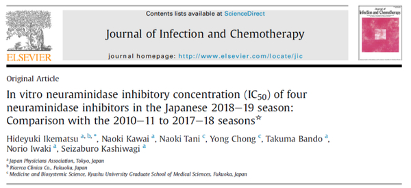 如上图所示,即将刊登于J Infect Chemothe(感染与化学杂志)的一篇论文,评估了日本2018-19流感季节神经氨酸酶抑制剂(流感特异性药物)的敏感性程度,帕拉米韦对H1N1pdm09、H3N2和乙流(B型流感)均保持着良好的抑制能力。